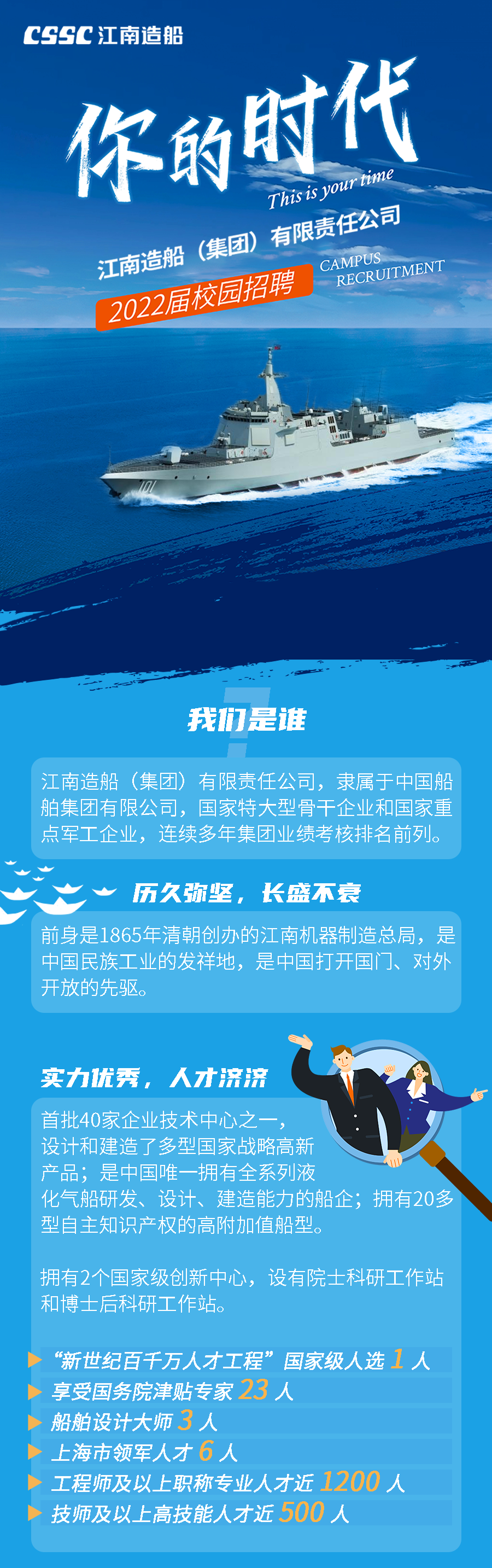 中國船舶集團旗下 江南造船、中國艦船研究院 校園招聘大幕已拉開 快來中國船舶 開啟你的時代