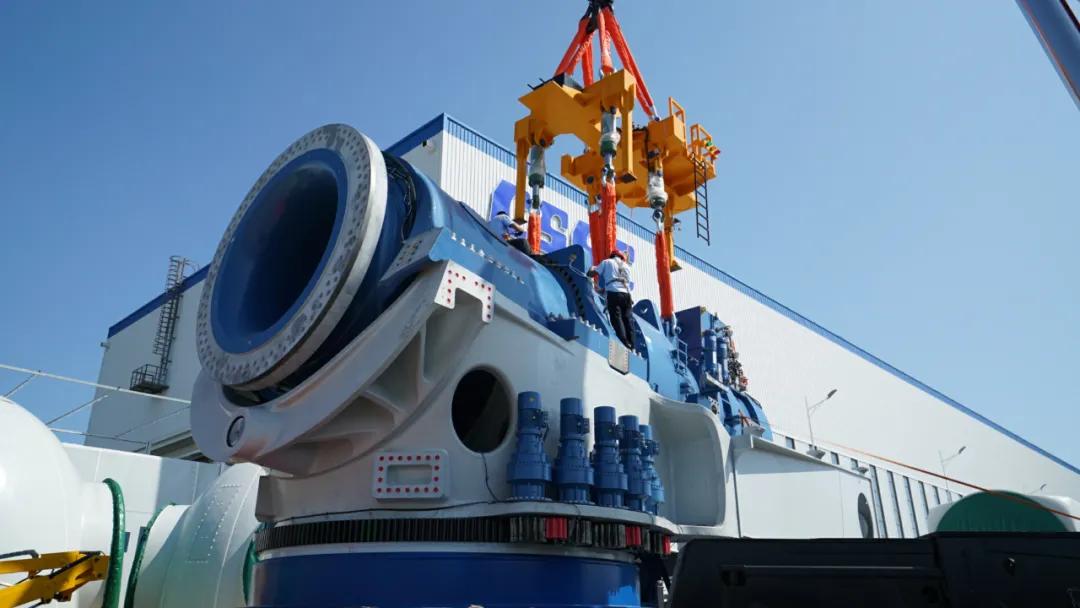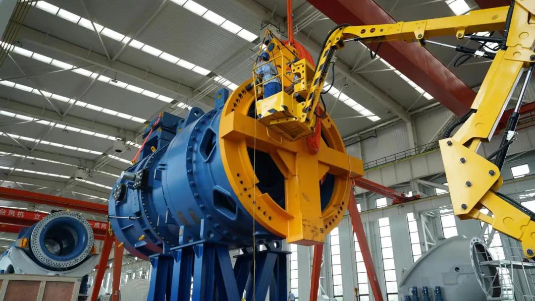 中國海裝工人在吊裝H210-10兆瓦機組傳動鏈