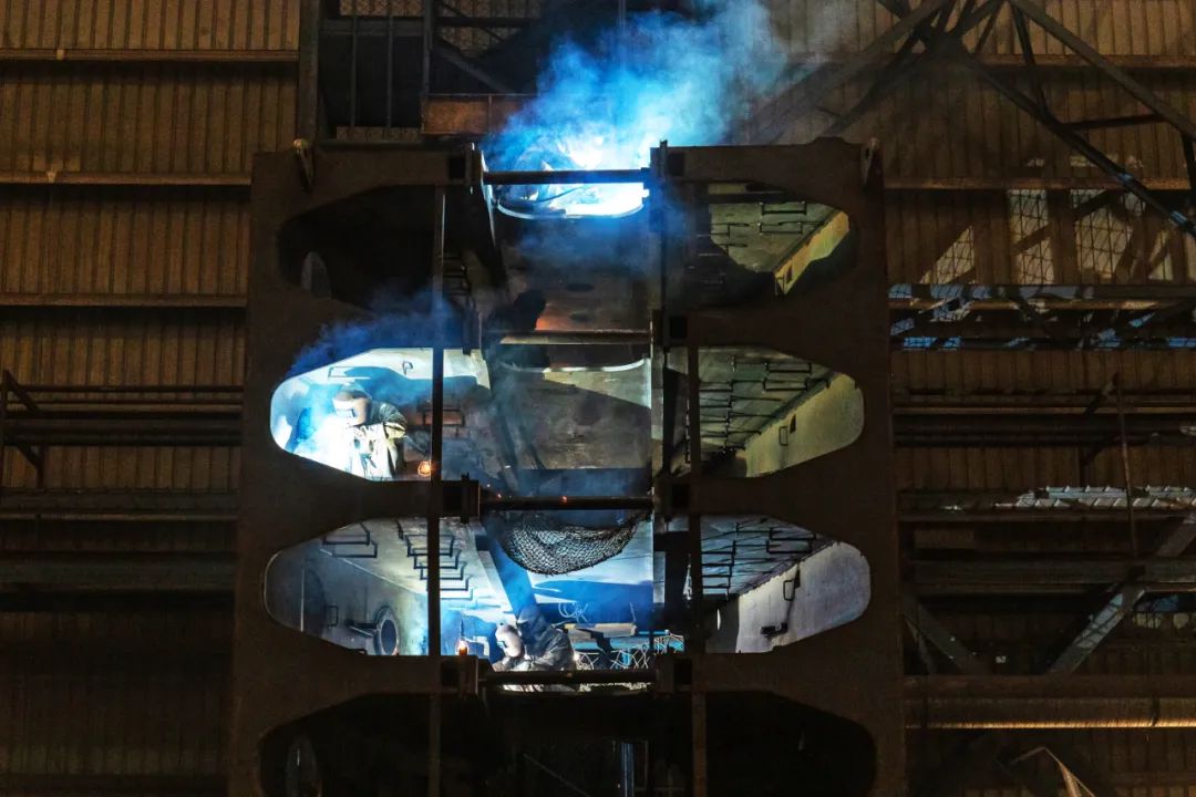 年終將至,江南造船吹響了沖刺的號角,生產(chǎn)全面加速,捷報接連而來,最近一個月,86000 m3VLGC、3600車PCTC完工交船,15000TEU集裝箱船、99000m3 VLEC相繼出塢,2200TEU支線箱船圓滿收官。最后一個月,江南造船各部門圍繞高質(zhì)量保交船的目標(biāo),制定相應(yīng)方案,緊盯標(biāo)準(zhǔn)周期,踏準(zhǔn)生產(chǎn)節(jié)點,實現(xiàn)節(jié)拍化建造,確保年度目標(biāo)按期順利達(dá)成,打贏年底收官戰(zhàn)。
