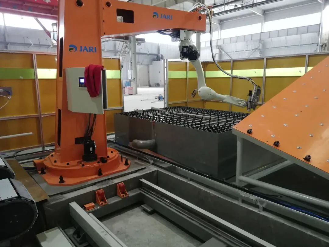該生產(chǎn)線基于機(jī)器人離線編程與自動(dòng)激光切割技術(shù),輔助采用搬運(yùn)機(jī)器人系統(tǒng)、自動(dòng)沖床及自動(dòng)涂油系統(tǒng)等自動(dòng)化手段,實(shí)現(xiàn)了多種罐體封頭的定位、物流轉(zhuǎn)運(yùn)、沖壓成型、裁切、碼垛等自動(dòng)化生產(chǎn)作業(yè),成功代替了客戶原有的半自動(dòng)成型、手動(dòng)切割等操作模式,罐體封頭的生產(chǎn)效率提高了75%,生產(chǎn)質(zhì)量和產(chǎn)品精度大幅提升,在罐體封頭全自動(dòng)生產(chǎn)領(lǐng)域獲得新突破。