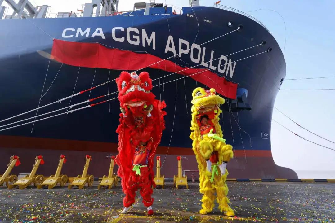 1月4日,新年第一個(gè)工作日。滬東中華聯(lián)合中船貿(mào)易為法國達(dá)飛海運(yùn)集團(tuán)建造的第四艘15000TEU超大型集裝箱船系列船“達(dá)飛·阿波羅”號(hào)在上海命名交付。