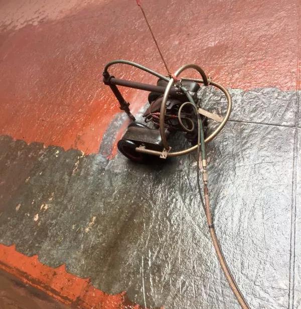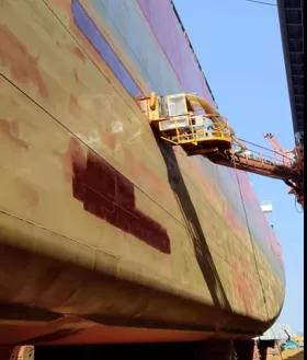 2020年,公司在水霧噴砂基礎(chǔ)上引進(jìn)了8套超高壓水除銹設(shè)備,并通過引進(jìn)技術(shù)自主研發(fā)爬壁機(jī)器人,進(jìn)一步壓減修船除銹粉塵的產(chǎn)生量,從根源上解決了船舶除銹帶來的揚(yáng)塵問題。