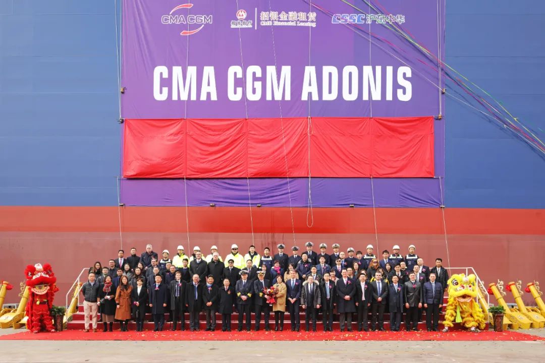 2月28日,中國船舶集團有限公司旗下滬東中華造船(集團)有限公司聯(lián)合中國船舶工業(yè)貿(mào)易有限公司為法國達飛海運集團建造的15000TEU超大型集裝箱船“達飛·阿多尼斯”號在上海命名。這不僅是為達飛集團量身定制的5艘常規(guī)動力系列箱船中的最后一艘,實現(xiàn)了平均每月命名交付一艘的既定目標,也是繼由該公司建造的5艘全球首創(chuàng)最大、最先進23000TEU雙燃料動力集裝箱船之后,又一款被市場追捧的超大型集裝箱船項目完美收官,進一步鞏固了其全球超大型箱船建造基地的地位。