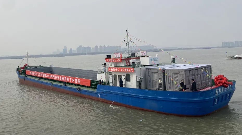 “船聯(lián)1號”由國網(wǎng)江蘇省電力有限公司聯(lián)合相關部門和企業(yè)共同打造,是長江流域最大載重噸位的電動貨船,將電能作為整艘船的唯一能源,實現(xiàn)零排放、低噪音、無污染。