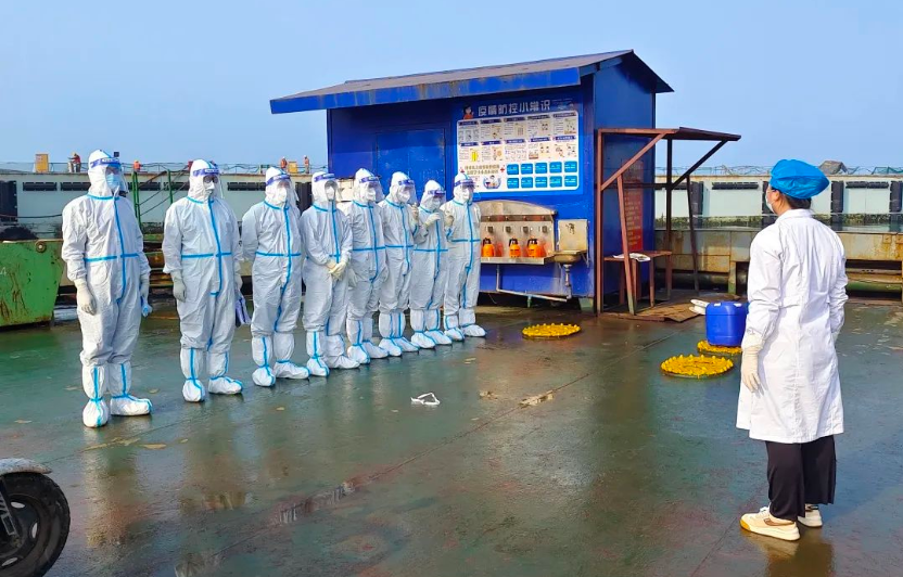在每一艘船舶即將駛向交付目的地時(shí),中船廣西防疫辦專門組織專業(yè)的醫(yī)護(hù)人員對(duì)參與送船的員工進(jìn)行防護(hù)培訓(xùn),并開(kāi)展應(yīng)急演練,同時(shí)要求船舶靠岸時(shí)統(tǒng)一穿著防護(hù)服,無(wú)指令不得上岸。此外,該公司還安排專車對(duì)送船員工進(jìn)行點(diǎn)對(duì)點(diǎn)接送,杜絕一切與外界接觸的可能。