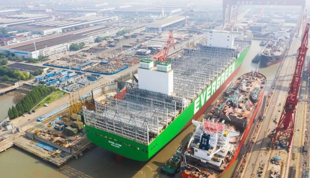 本次出塢的三艘船分別是江南造船為長(zhǎng)榮集團(tuán)建造的24000TEU超大型集裝箱船,為西南海運(yùn)建造的99000立方米超大型乙烷運(yùn)輸船,為萬(wàn)華建造的86000立方米超大型液化氣運(yùn)輸船。起浮的兩艘半船則分別為99000立方米超大型乙烷運(yùn)輸船后續(xù)船以及86000立方米超大型液化氣運(yùn)輸船后續(xù)船。