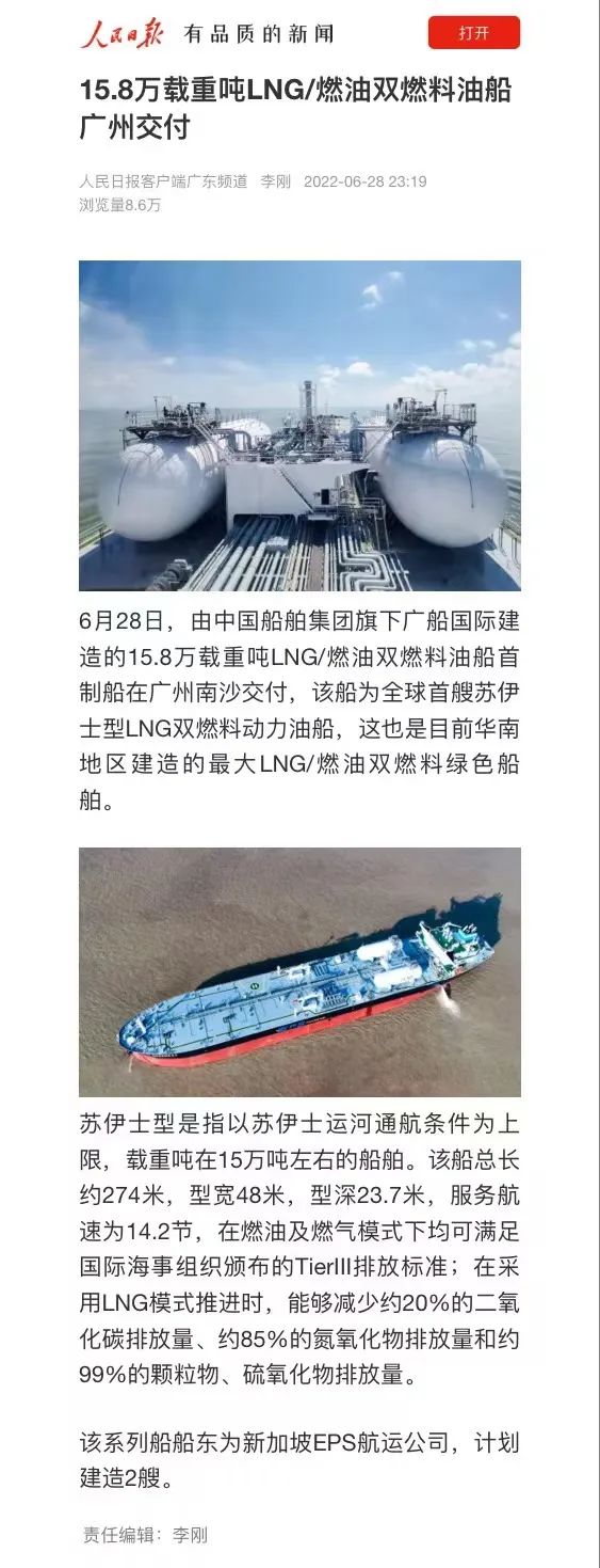 2022年5月30日交付,標(biāo)志著廣船國際成功攻克LNG雙燃料動(dòng)力船舶的研發(fā)和建造技術(shù),成為了華南地區(qū)首家自主研發(fā)和建造LNG雙燃料成品油船的船企。