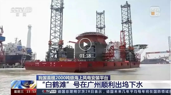 6月29日,由中國船舶集團旗下七〇八所設計、黃埔文沖建造的2000噸級海上風電安裝平臺“白鶴灘”號下水!