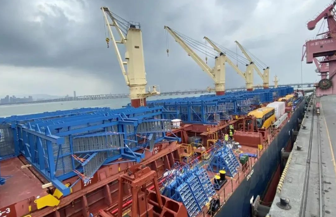 登船塔等設(shè)備的明顯特點(diǎn)是單體體積大,在運(yùn)輸途中其細(xì)小構(gòu)件易變形。此類設(shè)備作為首次出口沒(méi)有任何經(jīng)驗(yàn)可循,從制造廠到國(guó)際運(yùn)輸碼頭的短駁轉(zhuǎn)運(yùn)成了最大的難題。項(xiàng)目團(tuán)隊(duì)組織運(yùn)輸單位多次前往制造廠和碼頭進(jìn)行考察,與運(yùn)輸單位、交管部門、國(guó)際運(yùn)輸碼頭等多個(gè)部門密切溝通,研究確定了陸路短駁運(yùn)輸方案,確保萬(wàn)無(wú)一失。
