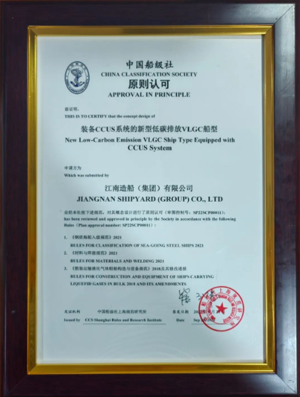 3月21日,中國船舶集團旗下江南造船聯(lián)合七一一所研發(fā)的全球首個配置碳捕捉和存儲系統(tǒng)(CCUS)的超大型液化石油氣運輸船(VLGC)船型方案獲得中國船級社原則性認(rèn)可(AIP)。