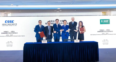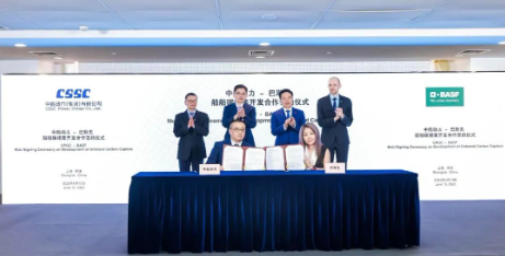 6月13日,中國船舶集團(tuán)旗下中船動(dòng)力(集團(tuán))有限公司與巴斯夫歐洲公司,在2023年上海國際碳中和技術(shù)、產(chǎn)品與成果博覽會(huì)上,正式簽署關(guān)于共同開發(fā)船舶碳捕集系統(tǒng)戰(zhàn)略合作諒解備忘錄。此次合作將發(fā)揮中船動(dòng)力在船舶動(dòng)力研發(fā)、制造與服務(wù)領(lǐng)域的領(lǐng)先優(yōu)勢(shì),以及巴斯夫前沿專業(yè)的氣體處理技術(shù),加速開展船舶碳捕集的商業(yè)化應(yīng)用,攜手助力全球航運(yùn)業(yè)綠色發(fā)展。