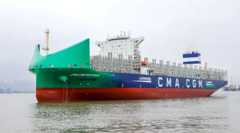 5月23日,由中國(guó)船舶集團(tuán)旗下滬東中華聯(lián)合中船貿(mào)易為法國(guó)達(dá)飛集團(tuán)建造的13000TEU液化天然氣(LNG)雙燃料動(dòng)力集裝箱船系列4號(hào)船“CMA CGM SAOPAULO”號(hào),在滬東中華長(zhǎng)興島廠區(qū)命名交付。南美洲東海岸航線又將新添一艘中國(guó)“智”造的新一代綠色環(huán)保、高效節(jié)能型集裝箱船,為達(dá)飛集團(tuán)箱船船隊(duì)綠色轉(zhuǎn)型發(fā)展貢獻(xiàn)新的中國(guó)船舶動(dòng)能。