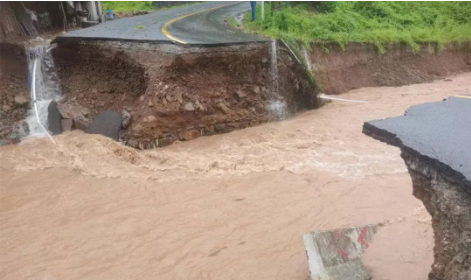 受近日強降雨影響,湖南省懷化市沅陵縣官莊鎮(zhèn)一處道路橋梁損毀。