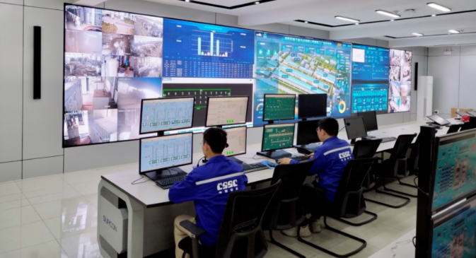 信息賦能,生產(chǎn)與數(shù)字技術(shù)深度融合。建立兩級(jí)運(yùn)營(yíng)指揮中心,重要產(chǎn)線現(xiàn)場(chǎng)實(shí)時(shí)監(jiān)控,關(guān)鍵經(jīng)濟(jì)指標(biāo)及時(shí)更新;水處理產(chǎn)業(yè)建成船舶配套領(lǐng)域首個(gè)智能工廠,風(fēng)電產(chǎn)業(yè)打造成具有行業(yè)特色成型智能制造車間。