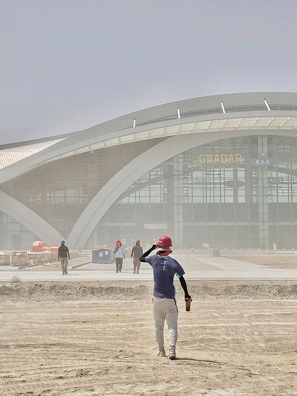 昆船公司——員工每天冒著40多度的高溫,忙碌在巴基斯坦瓜達(dá)爾新機(jī)場(chǎng)建設(shè)項(xiàng)目現(xiàn)場(chǎng)。
