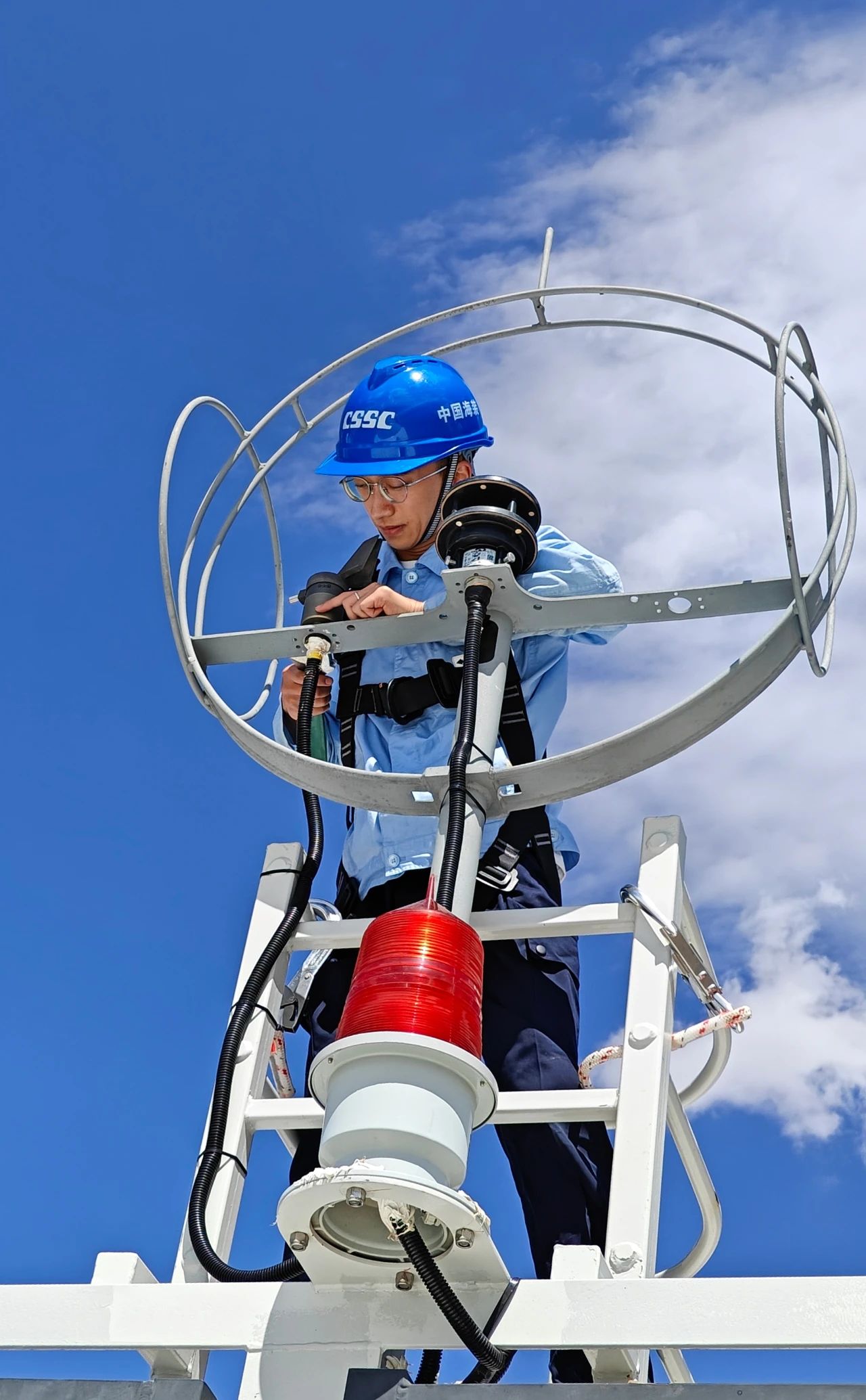 中船科技——子公司中船海裝風(fēng)場(chǎng)一線,一群不服“暑”的“蒸”漢子在維護(hù)風(fēng)機(jī)。