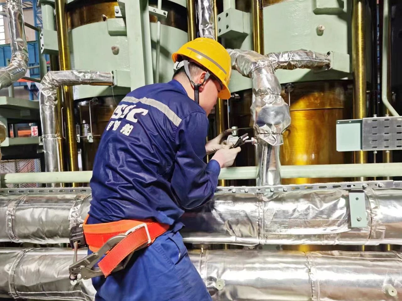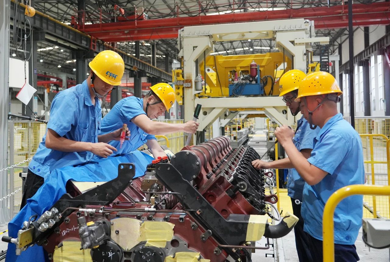 中船發(fā)動(dòng)機(jī)——調(diào)試人員頂著高溫在認(rèn)真安裝傳感器,汗水濕透了衣裳。