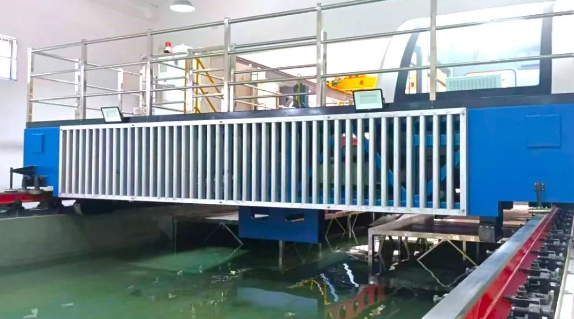中山大學“拖曳水池建造” 項目包含了拖曳水池拖車、軌道系統(tǒng)、造消波系統(tǒng)、造風系統(tǒng)等關鍵試驗設備。拖車實現(xiàn)從0.02米/秒到8米/秒的高精度、高速比調速,滿足拖曳水池流速儀標定和船舶試驗的雙重需求;造風系統(tǒng)實現(xiàn)了風譜模擬能力。