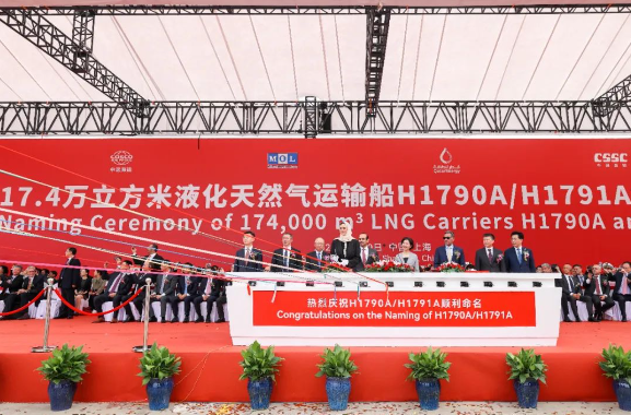 9月10日,中國船舶集團旗下滬東中華聯(lián)合中船貿(mào)易與卡塔爾能源液化天然氣公司,為“卡塔爾百船建造計劃——卡塔爾北部氣田擴能船舶購置項目”17.4萬立方米大型LNG運輸船首船“雷克斯·蒂勒森”號、2號船“烏姆·古瓦伊琳娜”號舉行命名儀式。卡塔爾能源事務(wù)國務(wù)大臣、卡塔爾能源總裁兼首席執(zhí)行官薩阿德·謝里達·阿爾卡比,中國船舶集團黨組成員、總會計師賈海英等出席命名儀式。
