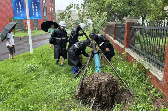 9月16日10點左右,七一一所莘莊、復興島、浦江鎮(zhèn)園區(qū)開啟“狂風暴雨”模式。年逾60的大松樹未能抵擋住風雨肆虐,倒下了,冷卻塔、窗戶、室外暫存設備均受到了不同程度的損壞。各園區(qū)防汛防臺帶班領導,在連續(xù)值班20多小時的情況下,迅速集結值班人員開展現(xiàn)場損失確認及修復工作,用心守護了園區(qū)的安全。