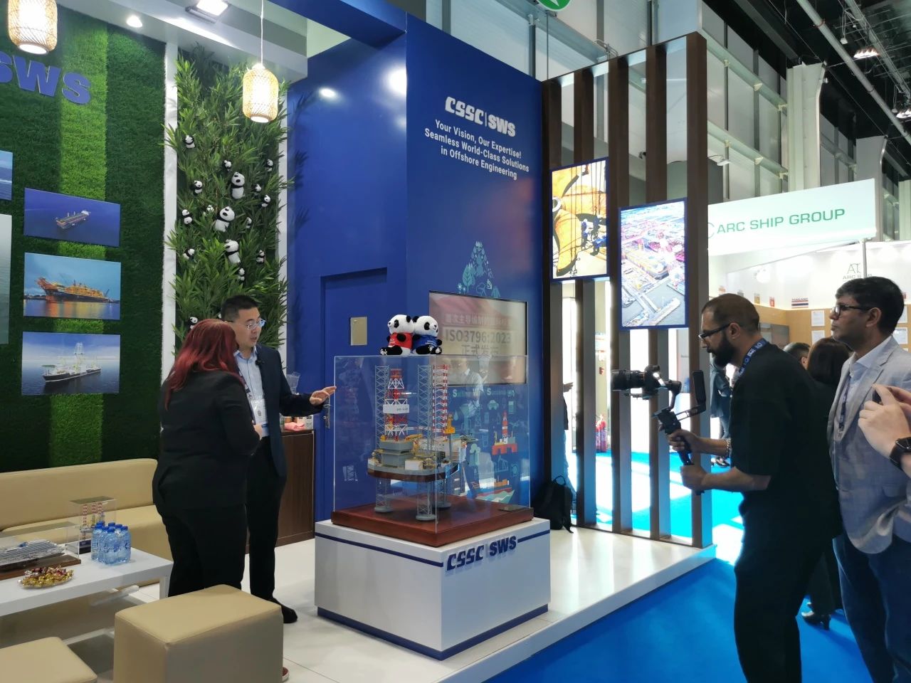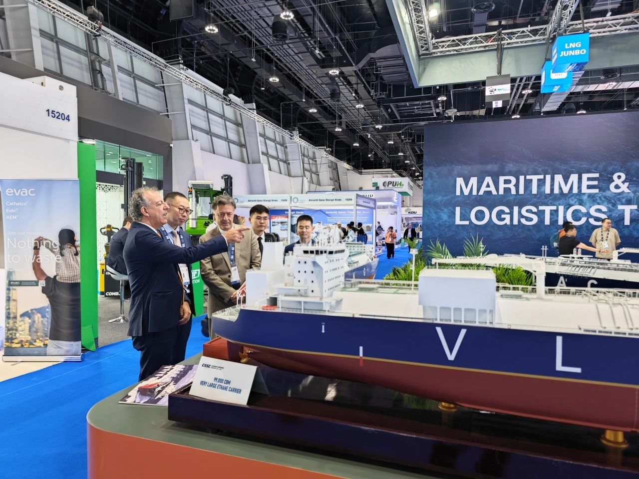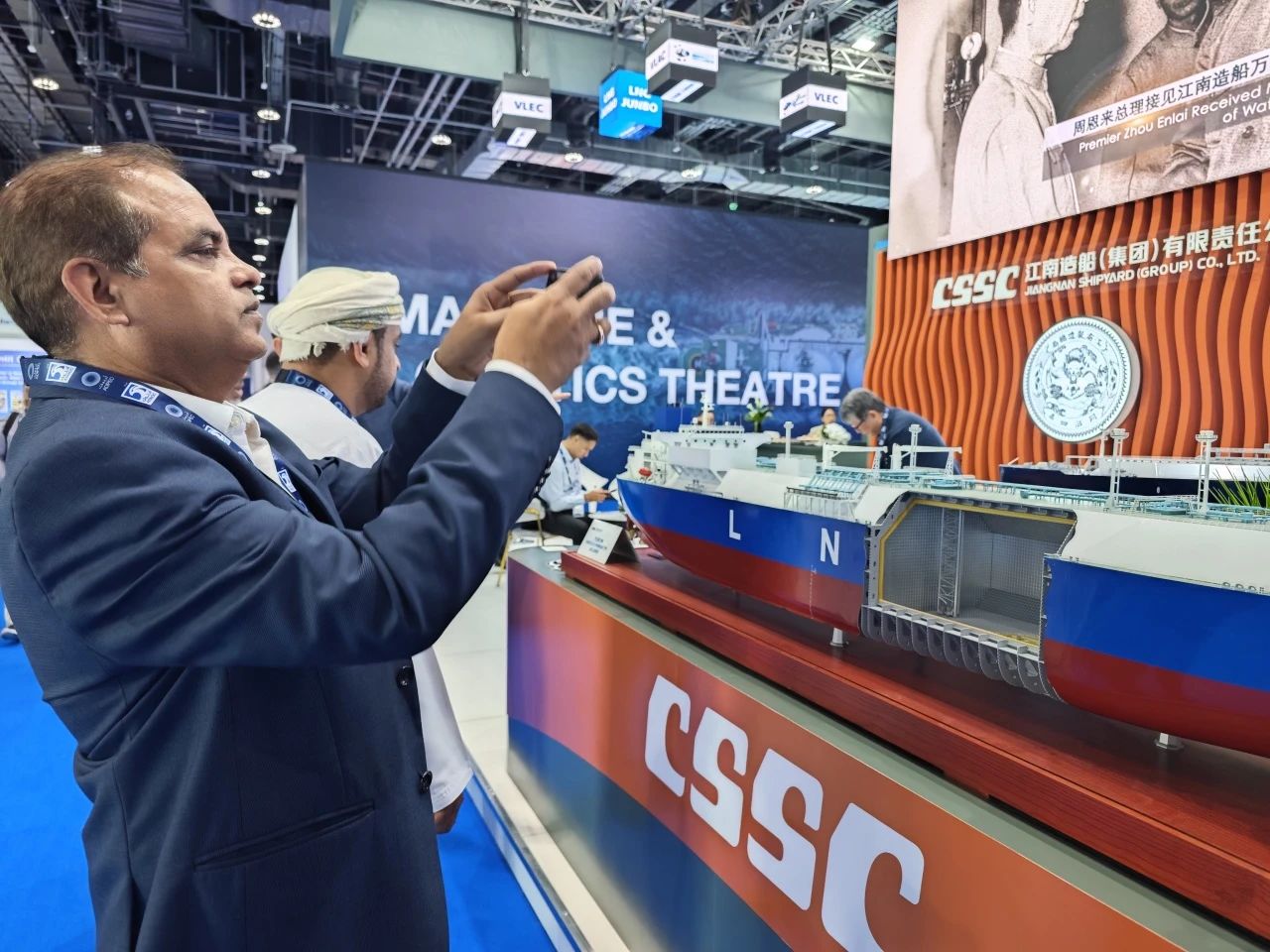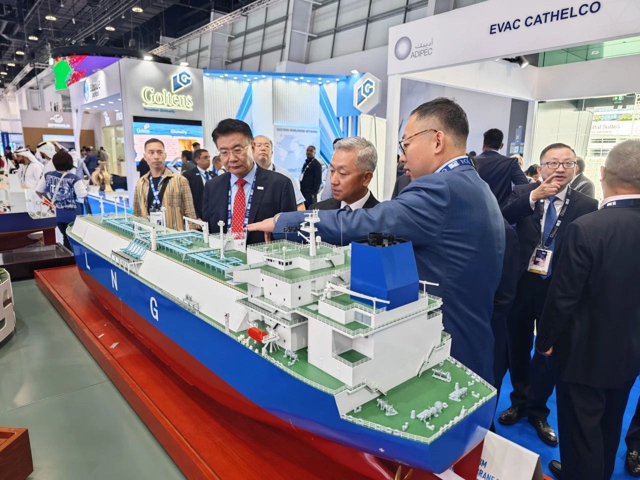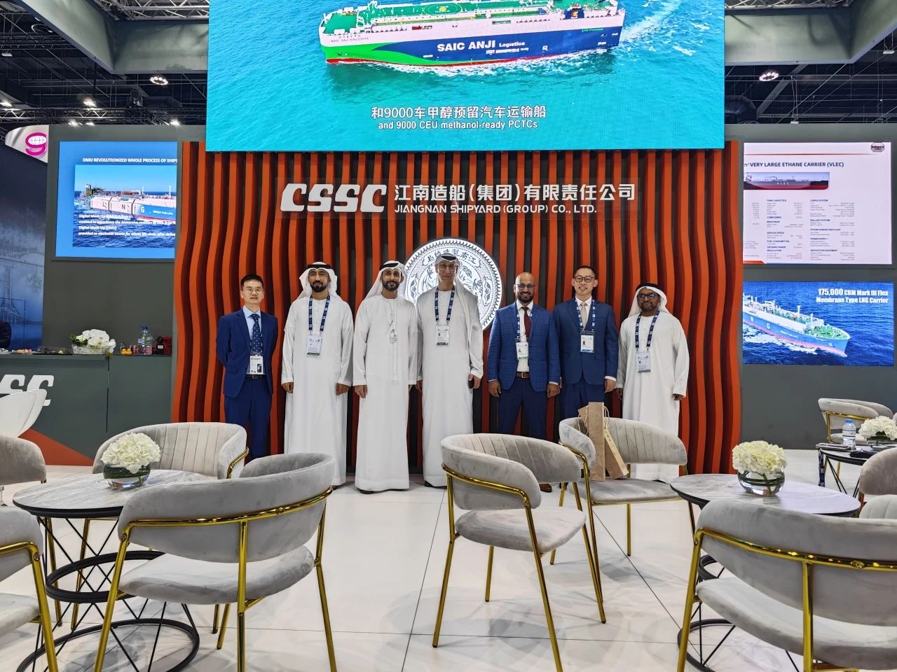 在此次展會上,江南造船展出了自主研發(fā)設計的17.5萬立方米液化天然氣(LNG)運輸船、目前世界上最大艙容的99000立方米超大型乙烷運輸船(VLEC)以及93000立方米超大型液氨運輸船(VLAC)等船型,憑借自身優(yōu)勢及特色展臺布置吸引了眾多油氣公司、船東、船級社、中間商、船廠、供應商等駐足觀看,同時也與其進行了廣泛和深入的交流。值得一提的是,中國駐阿聯(lián)酋大使一行也到訪江南造船展臺,詳細詢問江南造船的產(chǎn)品特點、技術(shù)和建造優(yōu)勢。