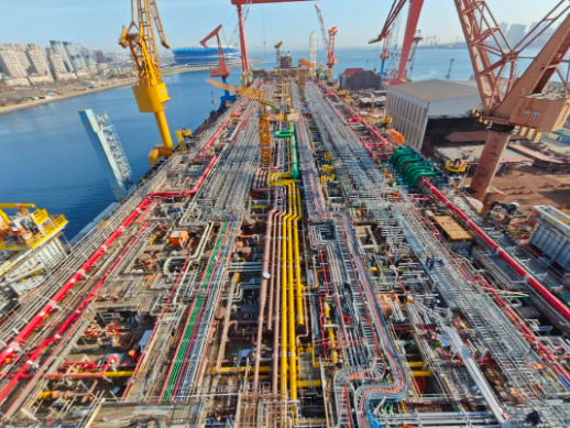 該項目從2024年4月26日鋪底至出塢,共計242天。此次出塢節(jié)點(diǎn)的順利完成,不僅為FPSO-10項目的后續(xù)水下調(diào)試和項目交付打下堅實基礎(chǔ),也展示了大連造船在海洋工程領(lǐng)域的領(lǐng)先地位和專業(yè)能力。