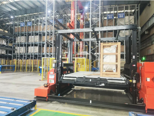 該系統(tǒng)單托盤舉升能力達(dá)到6噸,適用于各類大、重、分布不均、形狀各異物資的立體存儲。采用業(yè)內(nèi)首創(chuàng)的駛?cè)胧阶詣訉?dǎo)向車作為移載動力,通過自主研發(fā)的重型堆垛裝備與智能控制系統(tǒng)聯(lián)動,能夠在復(fù)雜的立體倉庫環(huán)境中準(zhǔn)確定位目標(biāo)并快速平穩(wěn)完成作業(yè)任務(wù)。同時(shí),通過引入現(xiàn)代物聯(lián)網(wǎng)和數(shù)字孿生等先進(jìn)技術(shù),實(shí)現(xiàn)了倉儲物流的智能可視化運(yùn)營。