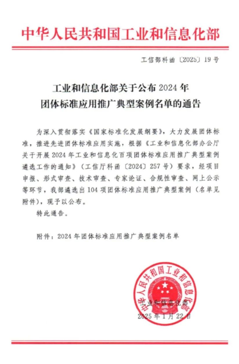 目前,集團(tuán)公司已連續(xù)六年入選工信部團(tuán)體標(biāo)準(zhǔn)應(yīng)用推廣典型案例。