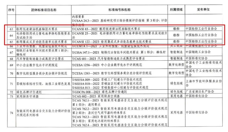 · 中船動(dòng)力研究院有限公司牽頭研制的T/CANSI 65—2022《船用低速柴油機(jī)曲軸技術(shù)要求》