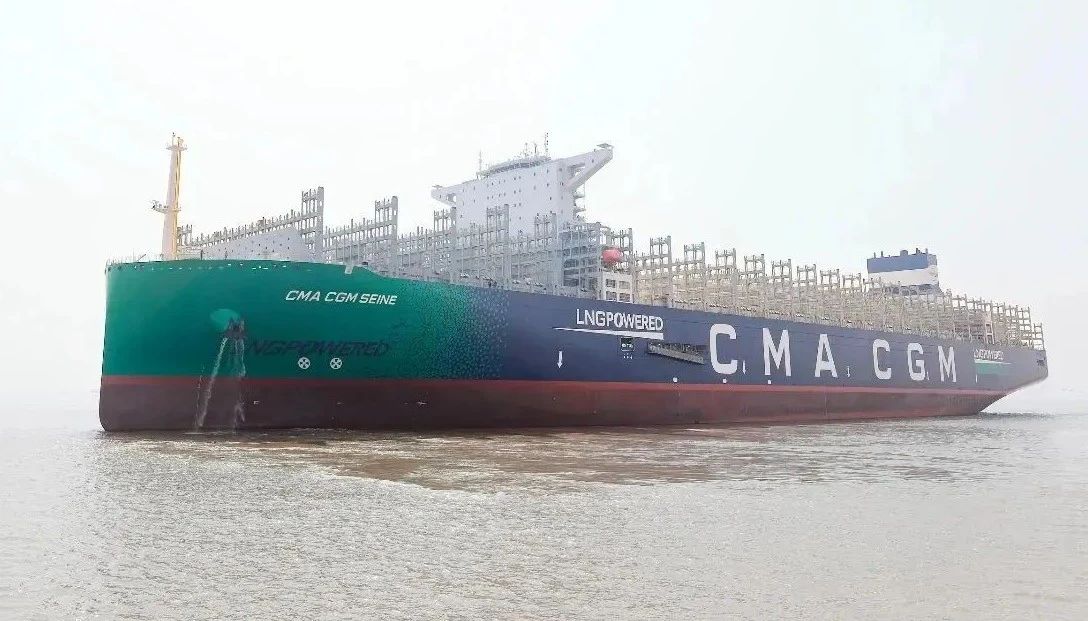 該船是法國達(dá)飛集團(tuán)在滬東中華訂造的4艘24000TEU級雙燃料動(dòng)力集裝箱船的首制船,也是滬東中華繼2020年9月完工交付的全球首創(chuàng)23000TEU雙燃料動(dòng)力集裝箱船的升級優(yōu)化型集裝箱船。該船總長399米,可一次裝下23872個(gè)集裝箱,包括2200個(gè)標(biāo)準(zhǔn)冷藏集裝箱,最大堆箱層數(shù)達(dá)24層,相當(dāng)于22層樓高度,是新一代海上“綠巨人”和“帶貨王”。