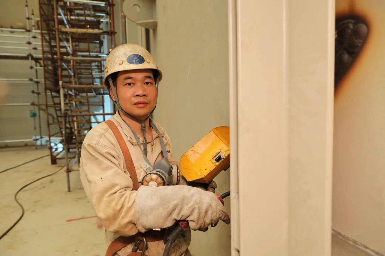 為了更好地掌握超厚板的焊接,搭載一部支持大合攏一班的梁金華和同事們一起進行了專門的焊接培訓(xùn)。有趣的是,老師謝祖靠、學(xué)生梁金華,都是來自該所技校的畢業(yè)生。既是師兄弟、又是師徒,這在黃埔文沖的工人隊伍當(dāng)中并不少見。