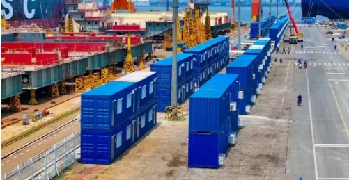 大船天津連續(xù)三年共投入800余萬元,分批購置300個集裝箱式休息室,內(nèi)部安裝空調(diào),為戶外作業(yè)員工搭建“夏能納涼、冬可取暖”的舒適休息場所;在“中船幸福驛站”里,50余臺制冰機(jī)在各生產(chǎn)一線不停運(yùn)轉(zhuǎn),為員工帶來絲絲涼意;食堂在每日午餐后迅速變身“臨時清涼驛站”,公共區(qū)域搭配按需取用的單人涼席,讓員工在餐后盡享片刻清涼;在露天作業(yè)現(xiàn)場配備成片的遮陽棚和冷風(fēng)機(jī),切實為員工撐起高溫下的“防護(hù)傘”。