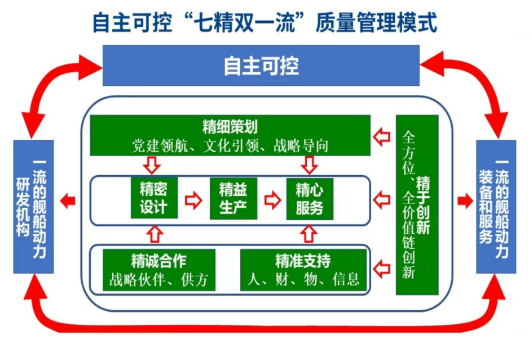 七一一所構(gòu)建的“自主可控‘七精雙一流’質(zhì)量模式”,以內(nèi)外雙循環(huán)為驅(qū)動,通過“七精”過程,達(dá)到“雙一流”目標(biāo),確保提供具有一流戰(zhàn)斗力標(biāo)準(zhǔn)的裝備和服務(wù)結(jié)果,實(shí)現(xiàn)了質(zhì)量管理的持續(xù)改進(jìn)與創(chuàng)新發(fā)展。該模式不僅為行業(yè)提供了成熟的管理借鑒,更通過重大型號項(xiàng)目研制和批量供貨的實(shí)踐,帶動產(chǎn)業(yè)鏈配套供應(yīng)商踐行正向設(shè)計(jì)理念,建成產(chǎn)學(xué)研深度融合的創(chuàng)新鏈,顯著提升了我國新型船舶動力的綜合研制能力。該模式是七一一所在多年實(shí)踐中,緊密結(jié)合行業(yè)特性和企業(yè)戰(zhàn)略,系統(tǒng)總結(jié)、提煉形成的一套具有鮮明特色的現(xiàn)代化質(zhì)量管理方法體系。該模式的有效運(yùn)行,全面驅(qū)動了七一一所在產(chǎn)品質(zhì)量、服務(wù)品質(zhì)、運(yùn)營效益、品牌價(jià)值及可持續(xù)發(fā)展能力等方面的顯著提升。