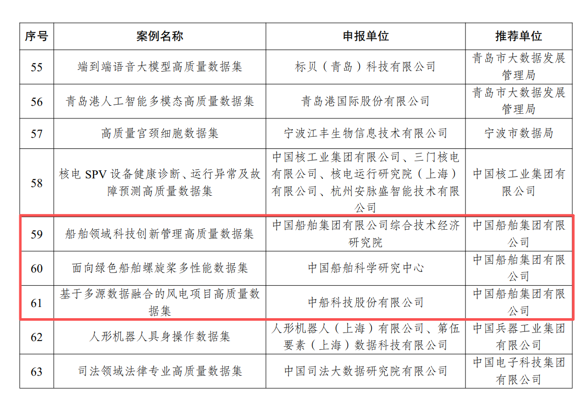 近日,國家數(shù)據(jù)局在2025中國國際大數(shù)據(jù)產(chǎn)業(yè)博覽會(huì)上發(fā)布了首批104個(gè)高質(zhì)量數(shù)據(jù)集典型案例。中國船舶集團(tuán)有限公司旗下綜合院申報(bào)的“船舶領(lǐng)域科技創(chuàng)新管理高質(zhì)量數(shù)據(jù)集”、七〇二所申報(bào)的“面向綠色船舶的螺旋槳多性能數(shù)據(jù)集”、中船科技申報(bào)的“基于多源數(shù)據(jù)融合的風(fēng)電項(xiàng)目高質(zhì)量數(shù)據(jù)集”成功入選并發(fā)布。