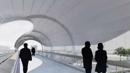 中船九院建筑創(chuàng)作室作品“流影橋”在浦東新區(qū)川南奉公路—祝潘公路人行天橋品質提升中獲得第三名。