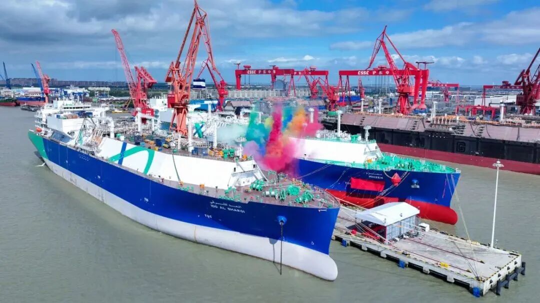 10月17日,中國(guó)船舶集團(tuán)有限公司旗下滬東中華為卡塔爾能源項(xiàng)目建造的17.4萬立方米液化天然氣(LNG)運(yùn)輸船“米赫澤姆”號(hào)和“東沙尼”號(hào)同日命名。這標(biāo)志該公司深入貫徹落實(shí)中船集團(tuán)“沖刺四季度”工作取得重要成果,在一周內(nèi)完成2船交付、2船命名、3船出塢、3船入塢,交出LNG運(yùn)輸船產(chǎn)能倍增優(yōu)異答卷。