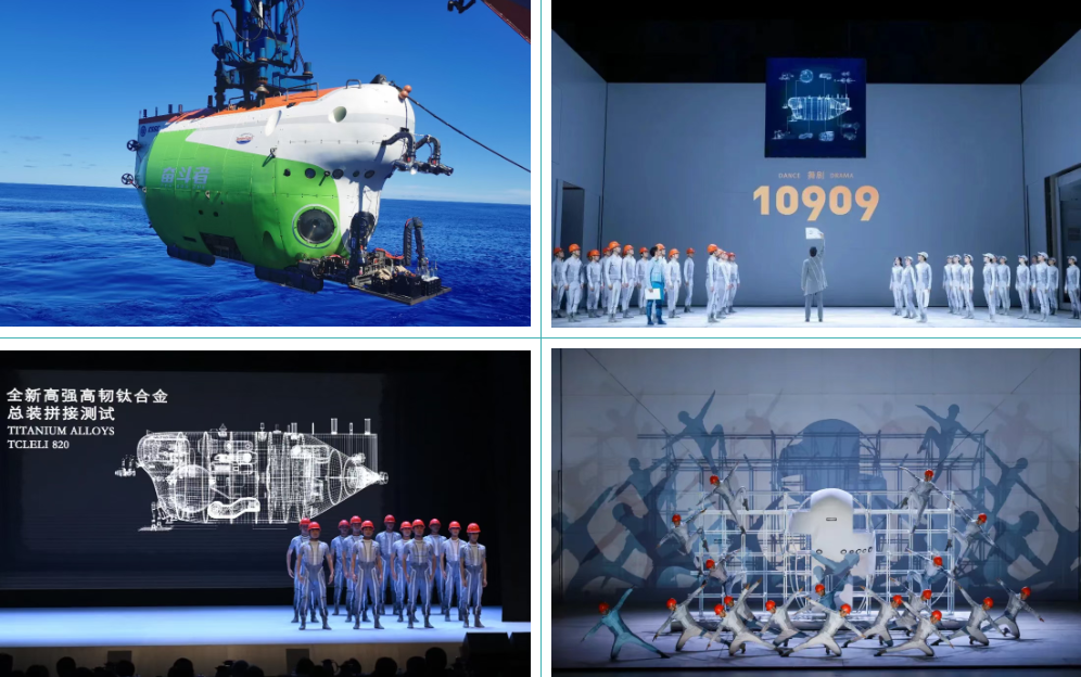 《10909》舞劇以七〇二所科研工作者為原型,以“奮斗者”號全海深載人潛水器在馬里亞納海溝首次探底10909米為題材,通過精湛的舞蹈語言與創(chuàng)新的舞臺表現(xiàn),生動再現(xiàn)“奮斗者”號全海深載人潛水器研制、下潛、海試的奮斗過程。該劇先后獲評第十四屆全國舞蹈展演優(yōu)秀劇目、國家藝術(shù)基金2024年度資助項(xiàng)目、2022年江蘇省重大題材文藝創(chuàng)作項(xiàng)目等。