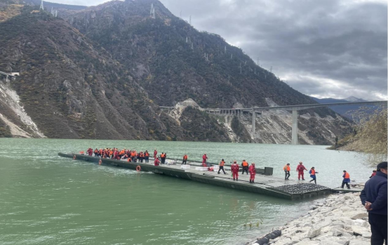 11月11日,四川省阿壩州馬爾康市雙江口水電站紅旗橋發(fā)生垮塌事故。險(xiǎn)情發(fā)生后,中國船舶集團(tuán)有限公司旗下中船應(yīng)急研制的動(dòng)力舟橋緊急投入搶險(xiǎn)救援行動(dòng)中。
