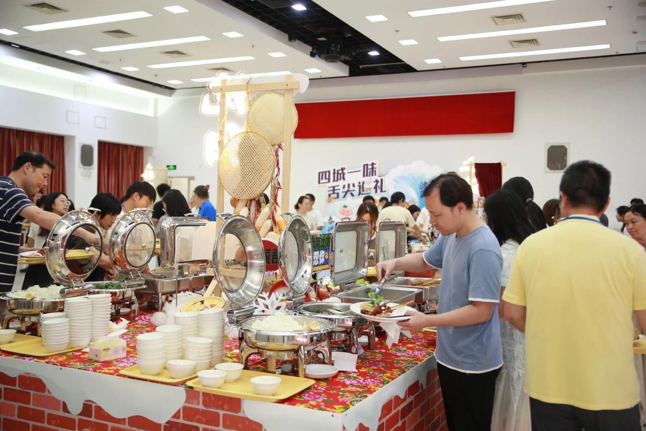 “四城一味,舌尖巡禮”美食節(jié)活動現(xiàn)場,來自上海、沈陽、泰興、莫干山四個所屬地的特色美食琳瑯滿目,職工們在品嘗中感受著濃濃的家國情懷。這不僅是味覺的享受,更是文化的傳承。