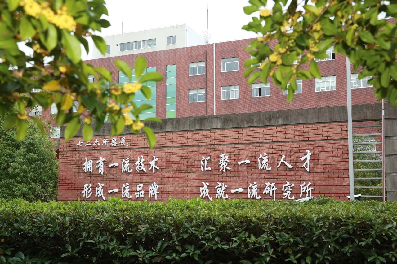 走進七二六所,首先映入眼簾的是莊嚴(yán)的漢白玉升旗臺。升旗臺上國旗迎風(fēng)招展,宣傳道旗“中船集團、智領(lǐng)深藍”隨處可見。移步大草坪,最引人注目的莫過于那艘來自莫干山的木船,正默默訴說著“不忘初心、牢記使命”的內(nèi)涵。