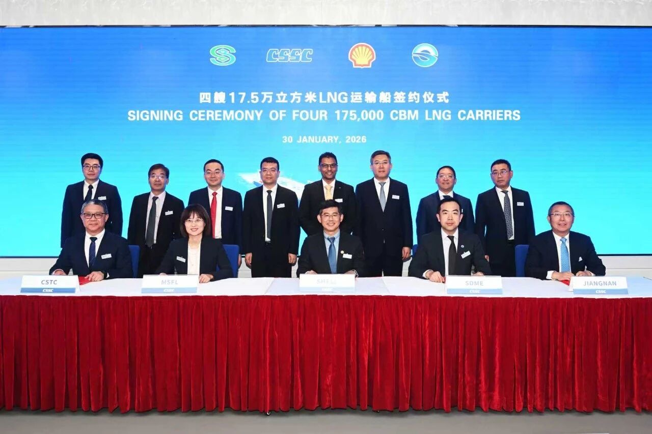 1月30日,江南造船聯(lián)合中船貿(mào)易成功獲得了4艘17.5萬(wàn)立方米大型液化天然氣(LNG)運(yùn)輸船建造合同。該型船是江南造船自主研發(fā)設(shè)計(jì)的最新一代智能、靈活的LNG運(yùn)輸解決方案。