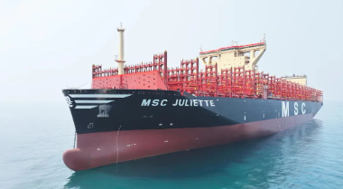 “MSC 朱麗葉”號(hào)安裝脫硫塔并預(yù)留液化天然氣(LNG)動(dòng)力功能,采用全新理念的環(huán)保減碳減阻設(shè)計(jì),滿足最新的環(huán)保排放標(biāo)準(zhǔn),是一款綠色環(huán)保、高效節(jié)能的大型集裝箱船。