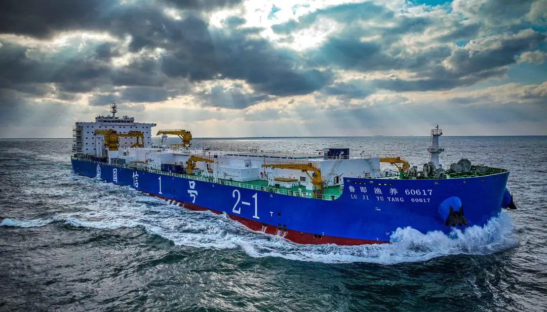 該船配備15個大型養(yǎng)殖艙,總艙容達(dá)9.6萬立方米,通過養(yǎng)殖水體擴容、海水交換系統(tǒng)優(yōu)化、電力負(fù)荷調(diào)整及光伏發(fā)電系統(tǒng)引入等技術(shù)升級,大幅提升了自動化、智能化水平和經(jīng)濟性,同時具備多要素協(xié)同養(yǎng)殖試驗功能,為解決傳統(tǒng)漁業(yè)資源衰退及近海養(yǎng)殖環(huán)境問題提供了新路徑。其自主航行和深層取水系統(tǒng)可規(guī)避自然災(zāi)害,優(yōu)化養(yǎng)殖環(huán)境,推動海洋漁業(yè)向智能化、現(xiàn)代化轉(zhuǎn)型,為海洋強國戰(zhàn)略和漁業(yè)產(chǎn)業(yè)升級注入新動能。