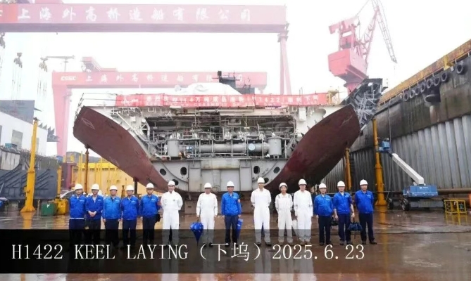 在該船的船建造過程中,建造團隊齊心協(xié)力,與船東船檢密切合作,合理調(diào)配生產(chǎn)資源,統(tǒng)籌物流,確保分段按計劃及時供應,順利完成了總段塞軸裝槳及泵艙完整性目標。目前,該船關(guān)鍵路徑分段已全部配齊,整船分段結(jié)構(gòu)全部完工,為下塢后的快速搭載創(chuàng)造了有利條件。