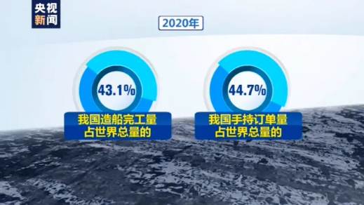 據(jù)統(tǒng)計,2020年,我國造船完工量和手持訂單量,分別占世界總量的43.1%和44.7%,繼續(xù)在國際市場份額中繼續(xù)領(lǐng)先。