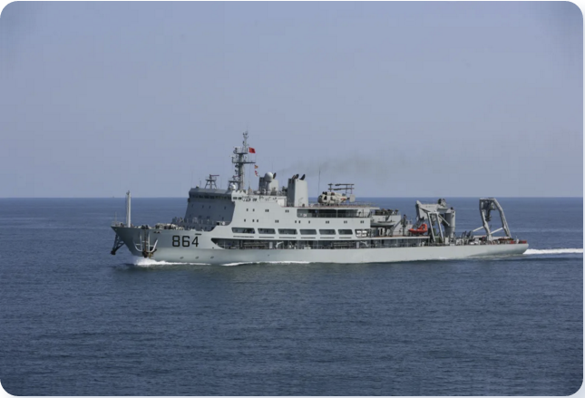 864艦是我國自主設計建造的首艘最新型綜合潛艇救援艦。該艦于2010年初服役,其主要任務是對失事潛艇實施援潛救生,還可以執(zhí)行各種潛水勤務及協(xié)助打撈作業(yè),以及對失事水面艦船和落水人員進行救援等。