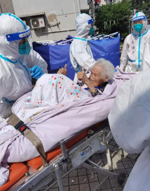 “我們是穿著防護(hù)服進(jìn)去的,突然看到這么多‘大白’,老人們不免有些緊張,問(wèn)的最多的就是‘去哪里’。隨著我們一趟趟幫著老人下樓、上車(chē),老人們開(kāi)始逐漸信任我們。因?yàn)檗D(zhuǎn)運(yùn)的部分老人中存在核酸異常的情況,有些老人還會(huì)時(shí)不時(shí)關(guān)照我們要注意防護(hù)。幫他們送上救護(hù)車(chē)時(shí),老人還和我們連聲表示感謝?!碧镅┟髡f(shuō)道。