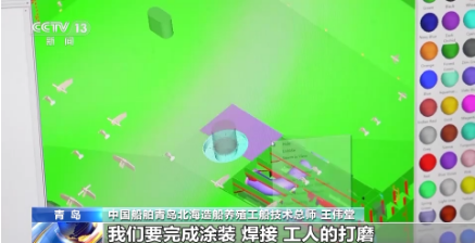 中國船舶青島北海造船養(yǎng)殖工船技術(shù)總師 王偉堂:魚排是第一次用在船舶上,整個魚排空間比較小,首先考慮就是怎么來裝。在很小的空間內(nèi),我們要完成涂裝、焊接、工人的打磨,還有系統(tǒng)調(diào)試。我們前期跟設(shè)計院做了深入的探討,尋求了一個最佳的方案,就形成了目前這個狀態(tài)。