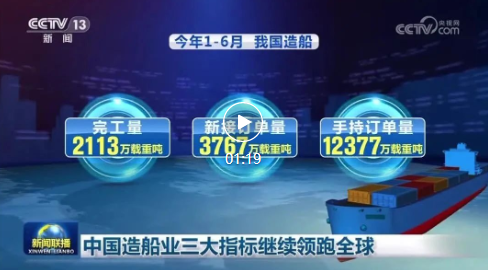 ??數(shù)據顯示,今年1—6月,我國造船完工量、新接訂單量和手持訂單量三大指標分別為2113萬載重噸、3767萬載重噸、12377萬載重噸,分別占世界總量的49.6%、72.6%和53.2%,以修正總噸計分別占47.3%、67.2%和46.8%,均位居世界第一,中國也成為唯一一個三大指標實現(xiàn)全面增長的國家。