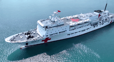 “絲路方舟”號醫(yī)院船羅吉星介紹:“作為一艘醫(yī)院船,它具備靈活的機(jī)動能力,能夠在災(zāi)害發(fā)生第一時(shí)間迅速抵達(dá)災(zāi)害地區(qū),提供醫(yī)療援助服務(wù),還具備多種換乘能力和轉(zhuǎn)移手段,在不具備靠泊條件的災(zāi)害地區(qū)可以通過直升機(jī)和救護(hù)艇,將醫(yī)護(hù)人員和醫(yī)療物資轉(zhuǎn)運(yùn)上岸,或者通過同樣的方式將我們傷病員轉(zhuǎn)運(yùn)至醫(yī)院船進(jìn)行醫(yī)療救治。